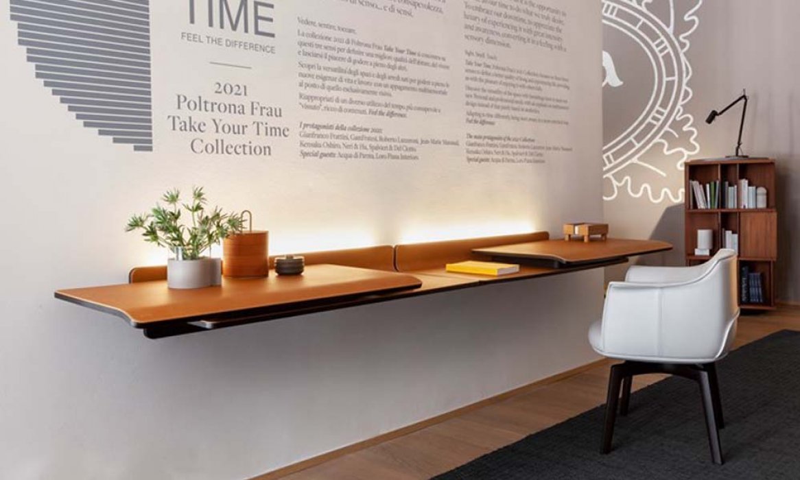 "Take your time - feel the difference", with these words Poltrona Frau defines the new collection 2021. Seeing, hearing, touching: The Poltrona Frau 2021 collection focuses on these senses to define a better quality of living. The pandemic forced us to change many of our habits, but it was also an opportunity to welcome new lifestyles: the versatility of spaces and furnishings to meet the new needs of life and work, the desire to regain possession of a different use of time, more aware and rich in content. In the mood, designed by Jean-Marie Massaud, is a timeless sofa in which the proportions of the volumes, as in an architecture, give value to the project. Single or modular sofas, right or curved angles, fabric or leather upholstery to adapt to any need. Mi, a series of cabinets characterized by a play between full and empty volumes. Doors in leather with particular cannettè finishing, tops in marble, bronzed glass, canaletto walnut, metal: Mi cabinets make their own the oriental lesson of "less is more", letting the precious combination of materials speak. Always focused to office space, this year Poltrona Frau expands its home office offer with two new products: Iren and Peek-a-Book. Iren is a desk composed of two shelves that slide one over the other, creating new work and storage spaces: a small workstation capable of adapting easily to the modern lifestyle. Available in both free-standing and wall-mounted versions, with tops in leather or hide. Peek-a-Book, designed by Roberto Lazzeroni, is inspired by the precious ancient volumes bound in leather. The top consists of a sheet of curved wood covered in leather that contains two drawers inside. The visual effect is that of a precious hardcover book. This desk is equipped with doors that hide the passage of cables and a device for wireless charging. In the continuous search for quality, Poltrona Frau inserts the precious Loro Piana Interiors fabrics in its collection to offer the most demanding customer the possibility of covering Poltrona Frau products with the finest wool and cashmere. The novelties are completed by the limited edition Infinito table, the Pierre coffee tables, the Plot screen and the new versions of iconic products such as the Archibald armchair, the Ginger chairs and the Volare bed.Poltrona Frau